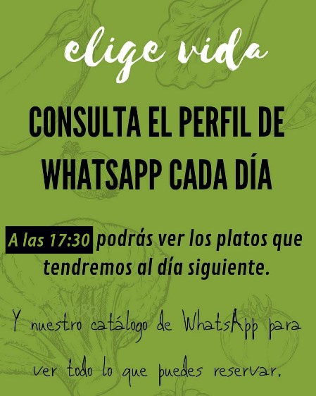 Consulta nuestro perfil de WHATSAPP cada día desde las 17:30 h. para ver los menús del día siguiente.